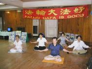来学功的有一老太太很精进,第一天炼功就觉得大法好,看到法轮转。有一个大陆年轻人,一来就能双盘,我们返台的那天叫计程车亲自送我们去机场,10多个新学员中有一个女孩打坐入静,好优美祥和。我们炼功点每天六点炼功,风雨无阻,离开那天下大雨,新学员仍然不少人到,我们在骑楼下炼功,临走前把炼功音乐磁带送给了新学员。