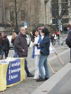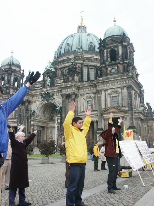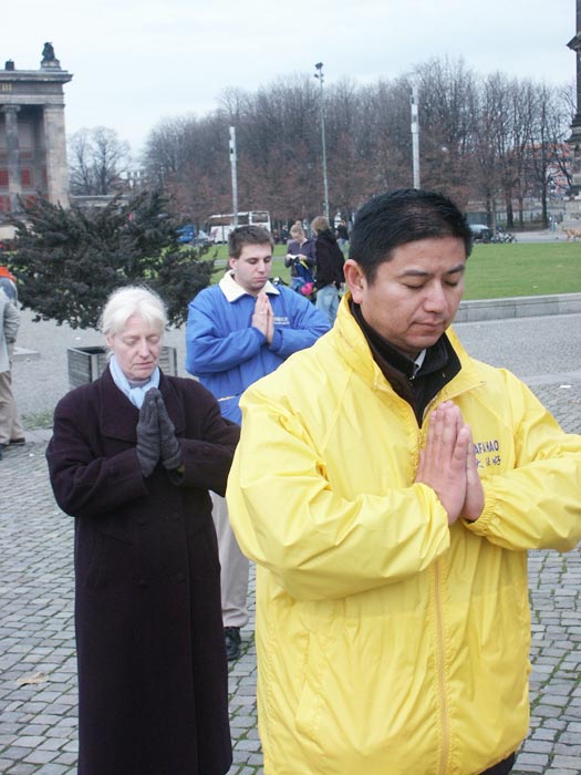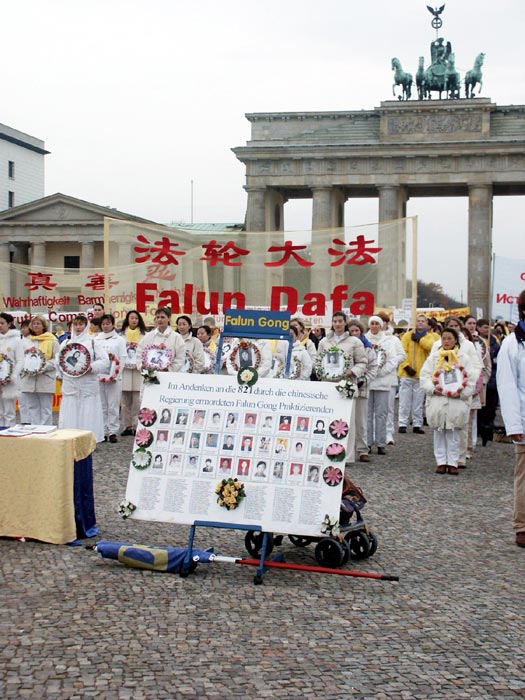 【明慧网2003年11月27日】 2003年11月22日,来自欧洲多个国家的六百多名法轮功修炼者汇聚在德国首都柏林,举行集会和游行,支持在德国以群体灭绝罪和反人类罪对中国前国家主席江泽民提起刑事诉讼。起诉人是39名生活在德国、澳大利亚、加拿大和爱尔兰的法轮功学员,他们本人或自己的亲朋好友在江泽民发动的对法轮功的镇压中直接受害。起诉状已于本周五通过律师呈交德国联邦检察院。