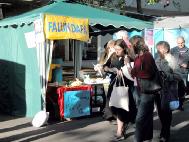 与周围琳琅满目的商品摊位相比,我们的摊位布置得很简单,而如此受欢迎的效果真是我们事先没有想到的。由于人多,活动时间还没过半,几百份传单和手工荷花制作说明就已经全部发完,学员不得不马上回去赶制。