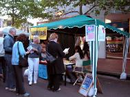 在从下午4点到午夜12点的整个活动中,我们展位前面的人们一直络绎不绝。一些当地居民当时就表示要学法轮功。有来自中国的学生,看到我们在这里先是很惊讶,但送给他们资料已经不拒绝了。一个学员将“与你同行”的中文小册子递给一个中国女学生时候,她身后的一个男学生马上抢先拿了过去,因为他手里的传单是英文的,可以看出他迫不及待的心情。