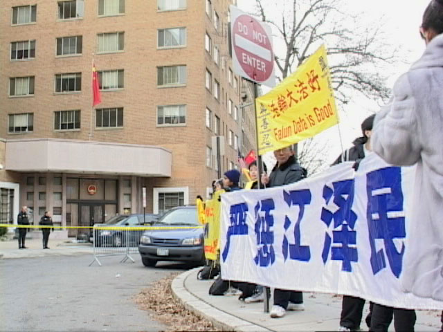 • 法轮功学员白宫前吁严惩江泽民(图)