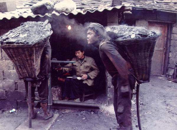 王致中,17岁,在贵州以背煤为生。一筐煤40公斤,从煤坑向上爬100米,然后再走1000米山路,挣1元人民币。