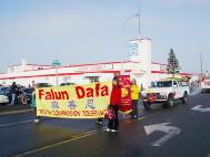 法轮功欢迎队伍的横幅