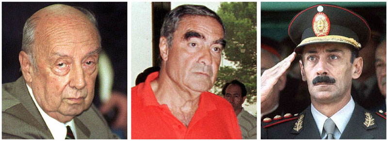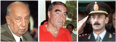 德国纽伦堡法院对三名阿根廷前独裁者下达逮捕令(由左至右): 前陆军首领Guillermo Suarez Mason,前海军总司令Emilio Eduardo Massera, 前国家主席魏德拉Jorge Rafael Videla。(法新社)