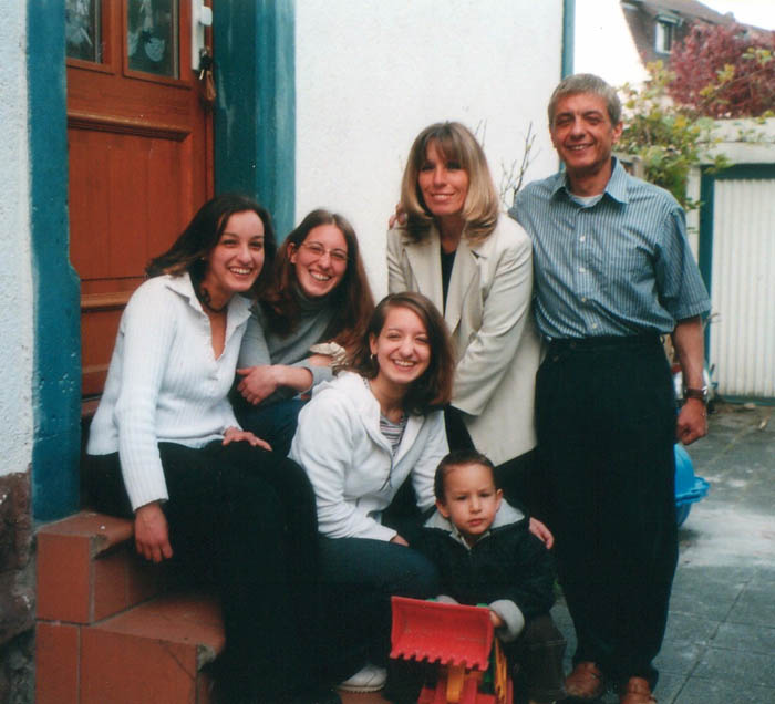 ![]() (图片:海德堡“法轮大法之家”。左到右,二女儿史黛菲,大女儿卡罗琳,三女儿约翰娜,母亲爱蒂特,父亲胡伯特,前面是小儿子约书亚) |