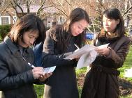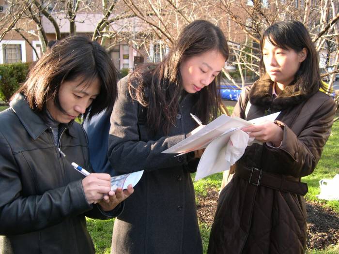 通过法轮功学员的不断讲真相,现在非常多的美国人知道了江泽民集团无理和残酷迫害法轮功的真相。一位过路的美国妇女高举手臂,用手指示出V形字样,对法轮功学员表示鼓励;另一位路过的美国人说自己练习瑜伽多年,她说她能感受到法轮功学员周围正的能量场,并愿意为中国的法轮功学员祈祷,而且主动要求在给李祥春、赵美玉的圣诞卡上签字。