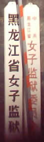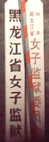 监狱正门的左侧标牌为“黑龙江省蓝盾服装厂”,右侧标牌为“黑龙江省女子监狱”、“中共黑龙江省女子监狱委员会”。