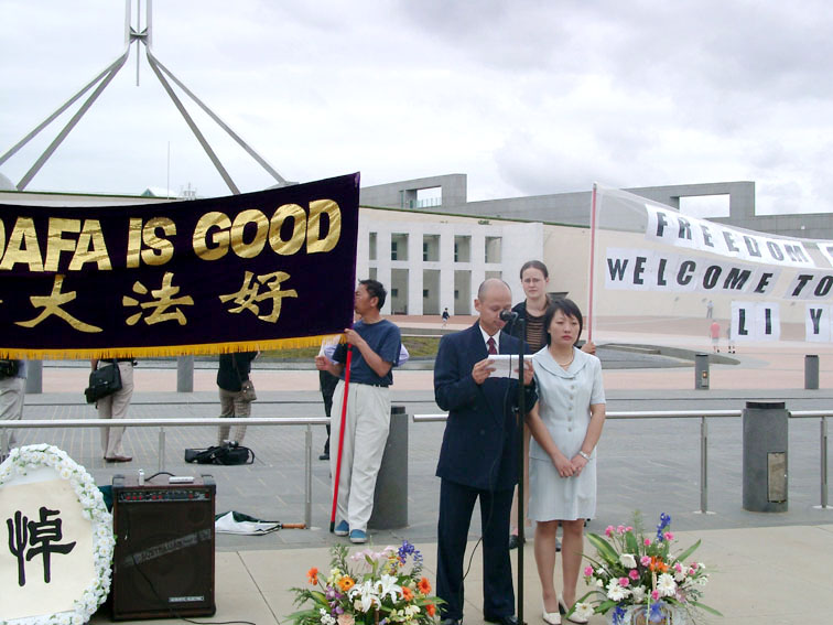 澳洲参议院通过704号动议案当天,来自全国各地的法轮功学员代表二百余人汇集堪培拉国会大厦门前举行大型集会,向国会递交了21,700份澳洲民众签署的支持通过704号动议案的签名以支持参议院讨论该项动议案,在答谢澳洲政府、国会议员、非政府组织及社会公众在营救澳洲公民李麒忠的未婚妻李迎女士的过程中所做出的努力的同时,并表示了对澳洲公民欧阳昱的弟弟欧阳明的哀悼。澳洲民主党领袖Andrew Barlett、中国民主阵线联盟总理事秦晋、中国工党总书记阮杰等均做了现场发言。