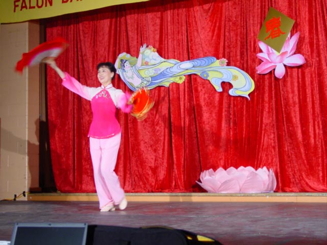 法轮大法学员与各界人士春节联欢活动最初开始于2000年春节前夕,当时有400多人参加,到今年2003年已经颇具规模。晚会是自由参加,免费入场,除了由法轮功学员表演的精彩喜庆的节目外,还备有丰盛的晚餐。菜式丰富,大约有250道菜,几乎全是由来自中国大陆、香港及台湾的多伦多法轮功学员亲手制作。