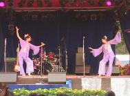 报导说来自西雅图的法轮功学员在两个议院之间发表一个新闻发布会之后进行了功法表演。