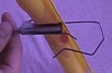 【明慧网2003年2月14日】此方法看似繁琐,实际操作起来很简单。用料:18号钢丝线(有一定弹性,建材商店或五金商店有售)、带有别杆的钢笔帽(可以别在兜上的那种或其它金属筒)、可以节节伸出拉长的钓鱼杆、双面胶、钳子等。