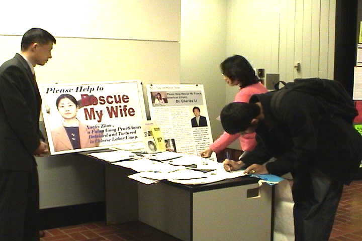 一位白人青年学生签完名,问:“我可以帮我的室友签吗?我们从报纸上看到Charles Li的消息,我们都愿意助他一臂之力!”