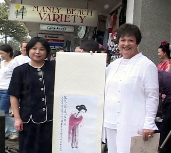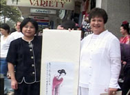 | 身为画家的大法弟子向两位来宾赠送了精美的传统中国画 | |