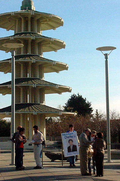有位中国人,当我们跟她用英文讲营救美国公民查尔斯时,开始她并不在意。当她走出了很远,开始读传单时,才意识到是为了营救李祥春。这时候,她已经过了红绿灯,她的先生和女儿也已经上了车;她的先生和女儿都说,算了吧;可这位女士说,营救李祥春,我一定要签这个名!
