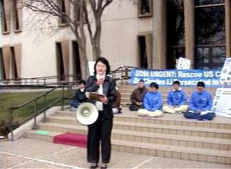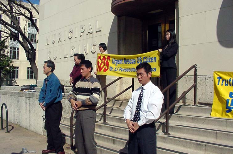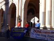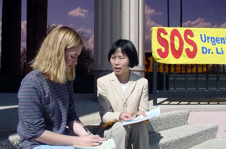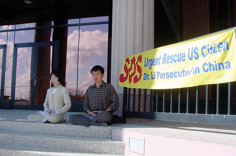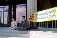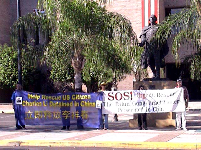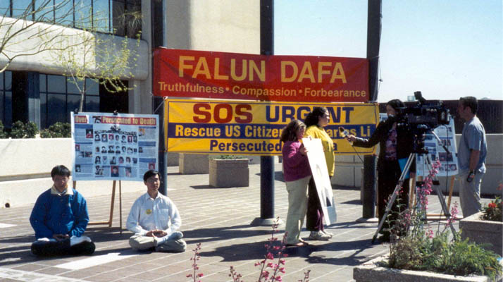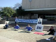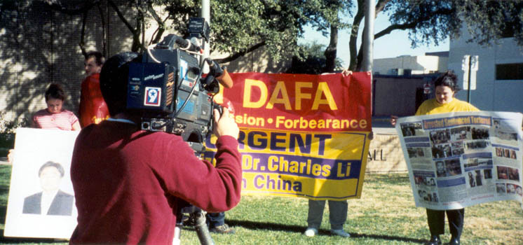 (5) 最后一队是在德州中部。从休士顿(Houston)出发,主要途经Dallas,Waco,Temple,Austin,Bryan等城市。我们在各个城市的市政大楼前举行新闻发布会,世界日报以及西方媒体的电视台、报纸等都对我们进行了采访。民众们纷纷签名表示支持。媒体的采访非常认真,除了详细拍摄我们炼功的场面和关于李祥春的被捕情况外,还详细地询问了关于中国迫害法轮功的问题,还询问了我们同行的一位学员在曾经回国遭受迫害的情况。当他们看到眼前这么一个活生生的被迫害的例子时,更加地震惊。