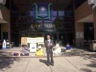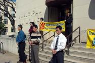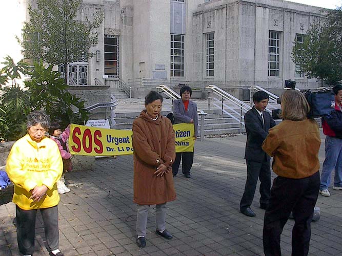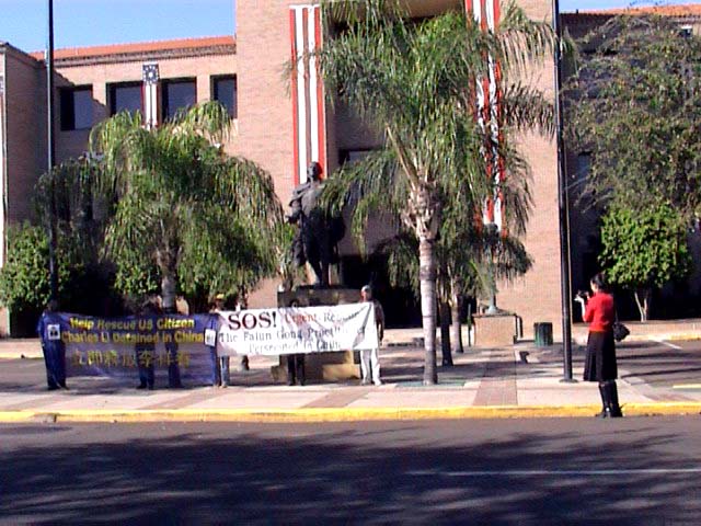 2月23日(星期日)上午10:00我们在维克多维亚(Victoria)市政府大楼前举行新闻发布会。一位市政府的工作人员听了我们的介绍,立即在签名簿上签名表示支持。一位巡逻的警官听了介绍,也明白了一切,也在签名簿上签了名。虽然没有媒体到场,我们还是用大喇叭宣读了中国无理扣押美国公民的媒体声明。