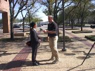 2月23日(星期日)下午3:00我们在考普斯克雷斯(Corpus Christi)市政府大楼前举行新闻发布会。由于我们开始通知媒体说是2:00,后来改为3:00,但有两家媒体还是2:00就来了,好在我们提前了一个多小时到了,所以还是安排得很好。记者详细询问,学员耐心回答,第一批记者花了近一小时采访完毕刚刚满意地离开,第二批两家电视台在3:00又来了,于是学员们又有充分的时间给第二批记者讲真相,直到他们满意地离开。最后走的一位记者说:“考普斯克雷斯的媒体今天全来了。”