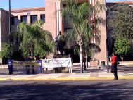 在艾尔帕索,两家电视台确认要来市政厅来采访我们。我们到达市政厅安置好横幅后就打坐发正念,炼功。当地NBC电视台记者在路上打电话告诉我们他马上就到,这时学员们有些放松,没有继续保持炼功的状态。几分钟后,记者的车开到面前的马路上,却继续开走了。与电视台联系后被告知,因为该市有一个突发重大事件,记者只能很遗憾地前往。就在几分钟甚至可能是更短的时间内我们的放松给邪恶钻了空子,学员们感到很痛心,同时也更加深刻意识到正法修炼的严肃性,强大的正念时刻不能懈怠。