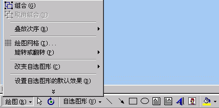 4、 单击`绘图`工具条中`绘图`按钮,选择弹出菜单中`组合`命令,或将鼠标放在虚框线上,点击鼠标右建选`组合`命令即可。如果对已完成的组合效果不满意,可重复以上步骤,选择弹出菜单中的`取消组合`或`重新组合`命令;