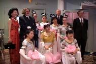 | 展位上忙碌的学员 | 莲花艺术团的演员和加拿大政府官员,华人代表亲切合影 |