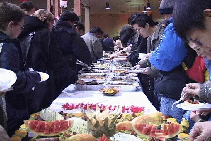 学员们与请来的朋友一面吃一面聊,无论是相识的还是互不相识的,大家谈得很投机。有位朋友感叹说:“看来法轮功一个个都挺能干的,长得也不错,还有好多还挺年轻的呢!”另一位朋友点头赞同:“早就听说了法轮功修炼人,但今晚是第一次看到他们的风貌!”