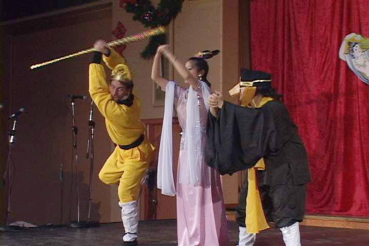 | 哑剧: 得法与正法之程 | 小品:八戒、悟空拜新年 | 合唱:可贵的中国人啊,你可知道全世界都说法轮大法好。 |