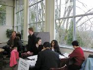 | 部份学员在准备与官员会谈 | 学员在州政府召开新闻发布会 |