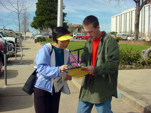 【明慧网2003年3月1日】加州营救李祥春跨州汽车之旅于2月28日抵达北加州的齐口市(Chico)和瑞丁市(Redding)。在齐口市,跨州汽车之旅成员举行了一个新闻发布会,符泳青小姐等在发布会上发言,呼吁美国民众和政府伸出援手,营救美国公民李祥春!