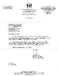 我知道“追查迫害法轮功国际组织”的律师斯图尔特.魏思曼(Stewart L. Weisman)先生跟您联系过。我已经阅读了魏思曼先生的信,并请求您的办公室能对此请求给予全面认真的考虑。