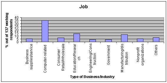 A.7.职业。 表中所示为当时在职人员(137人)的职业分布。