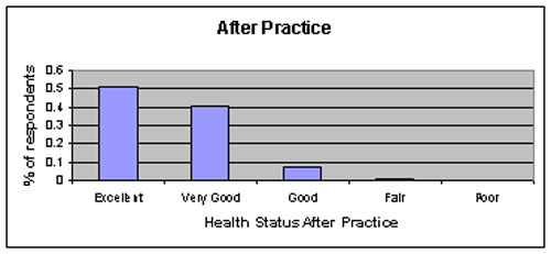 统计资料显示在北美的大法弟子相对年轻而且有很好的教育背景。根据对修炼前后健康的自我评估显示修炼使健康有很大改善。下面是调查结果。