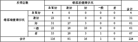 根据图6、7 和表二的结果可以看出,224 位反馈者在修炼后, 健康状况得到极大的改善。