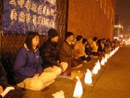 【明慧网2003年3月22日】遭遇了一场大暴雨的洗礼后,天空显得格外清亮。20日下午不到6点半(北京时间21日上午8点半),来自大芝加哥地区的部分法轮功学员来到中国驻芝加哥领事馆门前,抗议中国政府对美国公民,法轮功学员李祥春的非法审判。学员们都在静静地发正念,场面祥和,肃穆。