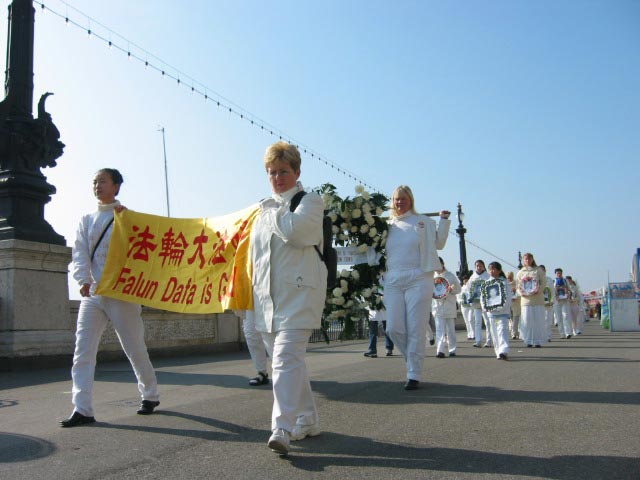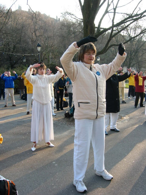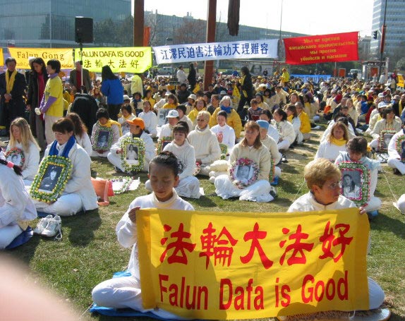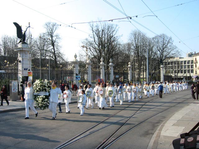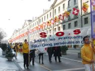 附:法轮功学员在日内瓦人权大会期间的游行和炼功场面的照片
