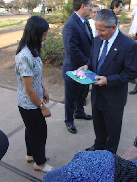 | 学员亲自向洪都拉斯总统赠送真相资料和一朵莲花,总统先生热情地感谢我们把真善忍带到他的国家。 | 向洪都拉斯国会主席介绍真相,他立刻表达了愿意帮助制止[在中国的] 这场迫害的意愿。 |