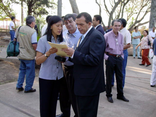 | 在洪都拉斯首都特古西加尔巴雄狮公园炼功点,许多学生急切地尝试功法。 | 在洪法途中,我们向沿途所有主要图书馆赠送了大法书籍。ICI图书馆管理员正在了解大法。 |