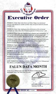 美国新墨西哥州阿尔伯魁市宣布2003年2月为“法轮大法月”