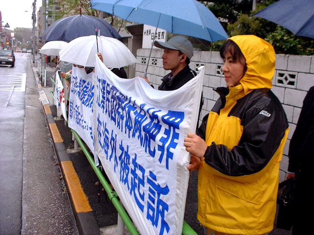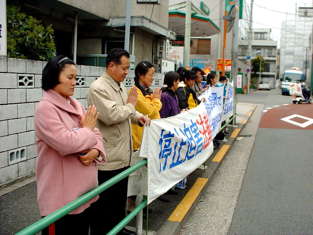 日本学员认清起诉江××案的特殊意义 12日起连续四日在中使馆前发正念
