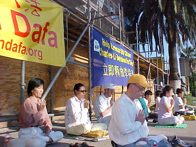 【明慧网2003年4月14日】鉴于起诉江××一案原告律师将于4月14日向法院进一步提供江XX及610办公室的罪行以及起诉的法律程序证据,为了清除另外空间的干扰。休士顿大法弟子于4月12-13日从早上八点至晚上十点,加强在中领馆前发正念,支持人间的正义审判。