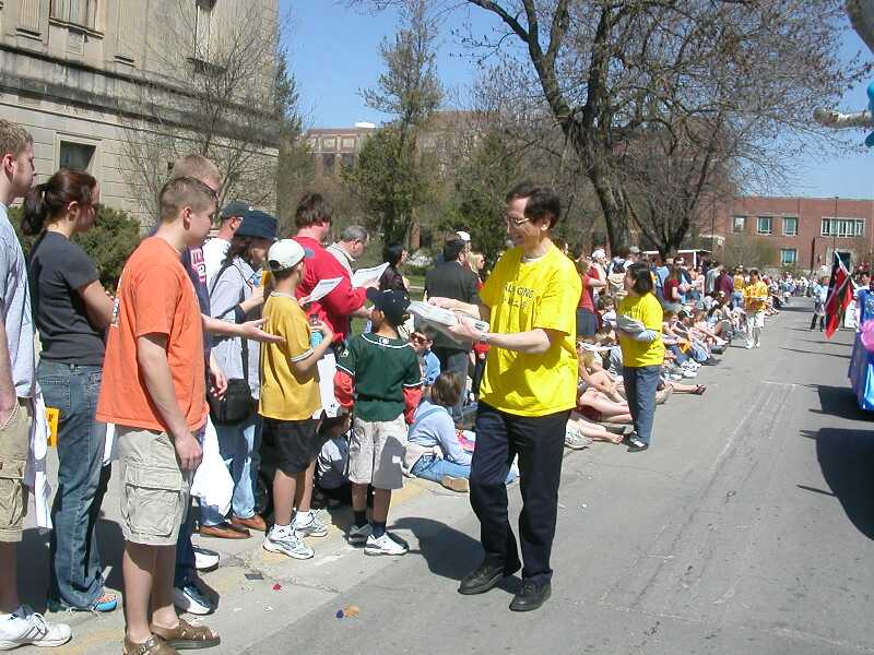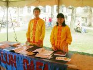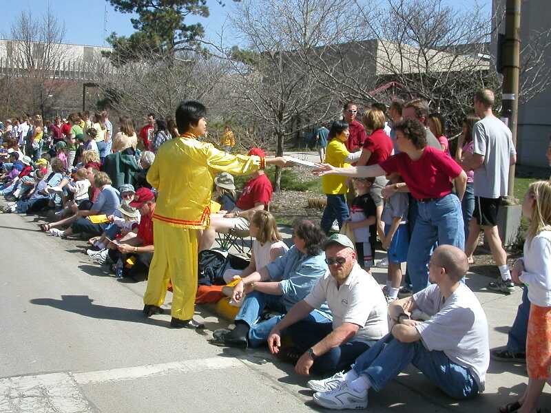 4月12日,南加州部份大法弟子应邀参加在帕莎迪那市的世界太极气功日庆祝活动,祥和强大的能量场就吸引了众多气功爱好者的目光,很多中西人士纷纷索要资料讯息。教功时,学习者由一个变四个,四个变十个,后来很快就围上来密密的两三层,场面颇为壮观。