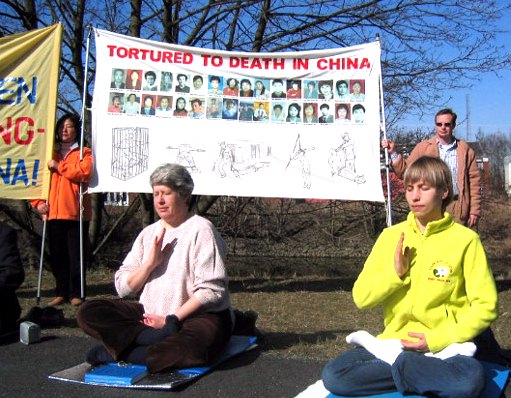 将人间首恶绳之以法──北加州大法弟子连续八天中领馆前发正念(图)