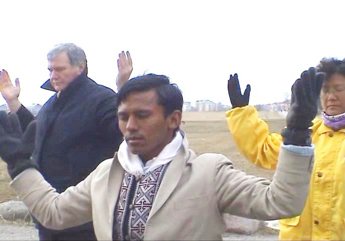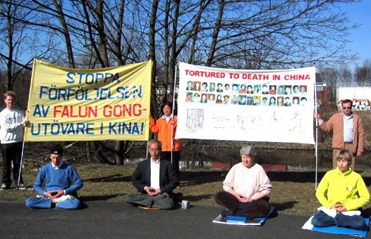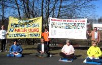 【明慧网2003年4月16日】江××以群体灭绝罪在美国被告上法庭。2003年4月13日至4月14日,部分瑞典大法弟子来到中国驻斯德哥尔摩大使馆以及中国驻哥德堡的领事馆前,集体发正念,支持对江××政治流氓集团的正义审判。