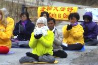 香港法轮功学员静坐声援 告倒江泽民对中国经济民生有好处(图)