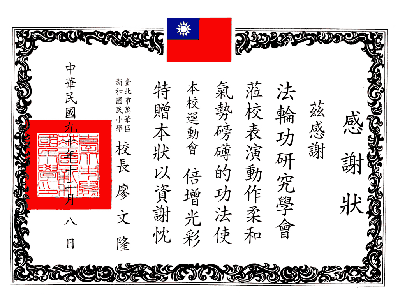 2001年12月29日,台北市永春国小感谢状