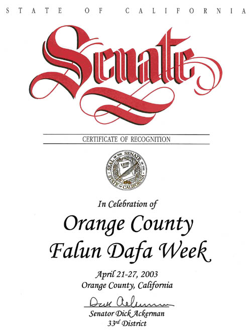 庆祝橙县法轮大法周2003年4月21至27日加州橙县