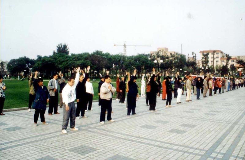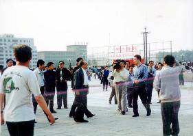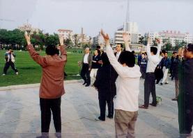 二,1998年5月15日,国家体育总局领导赴长春视察法轮功学员炼功情况,这是当天市内部分炼功点学员炼功场景的9张照片。