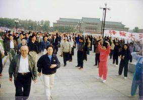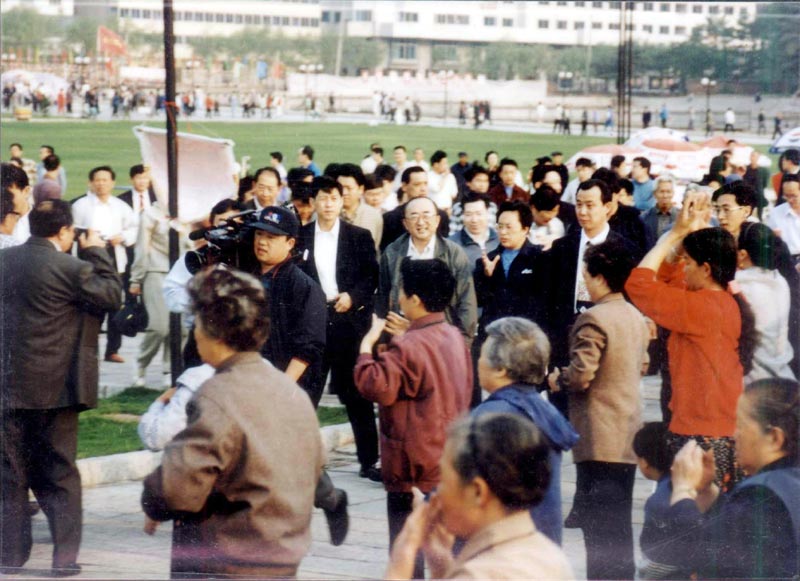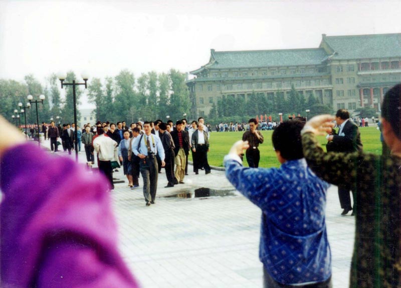 三,1998年5月15日,国家体育总局局长伍绍祖亲赴法轮大法发祥地长春,广泛深入群众之中,这是伍绍祖局长实地视察法轮功学员炼功、学功情况的17张照片。