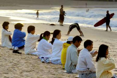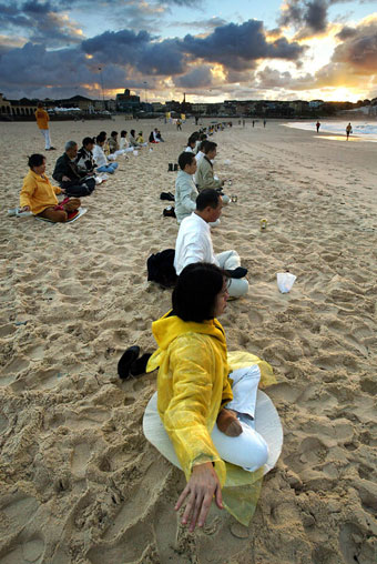 路透社图片报道:悉尼邦代海滩的清晨打坐