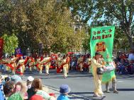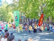 | 游行队伍经过市中心 | 唐装表演 | 红绸舞 |