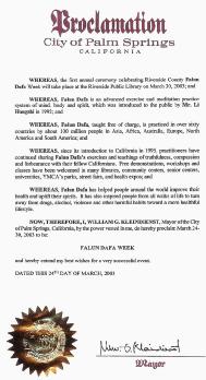 鉴于,法轮大法帮助全世界的人们改善健康,升华精神,启悟社会各界人士远离毒品,酗酒,暴力以及其它不良习惯,转向更为健康的生活方式。